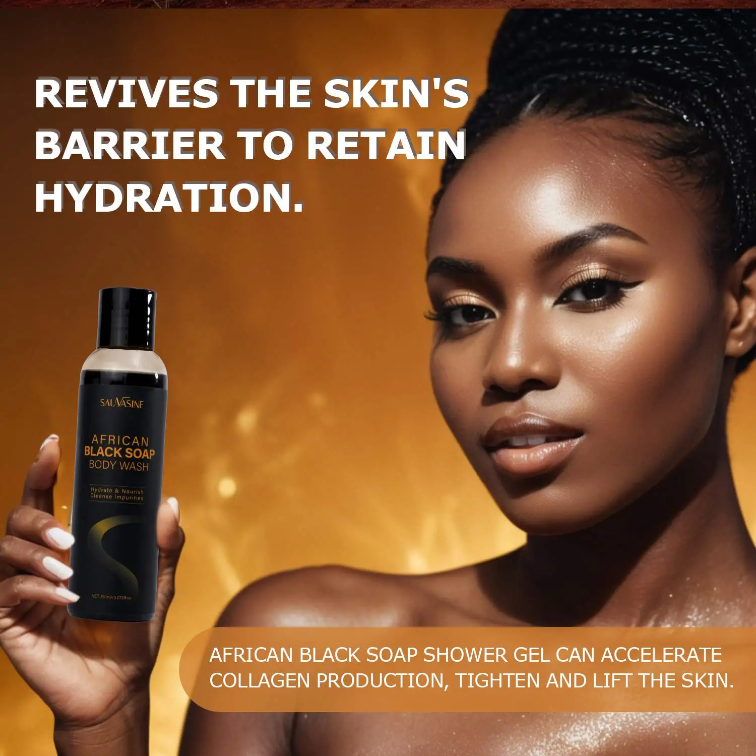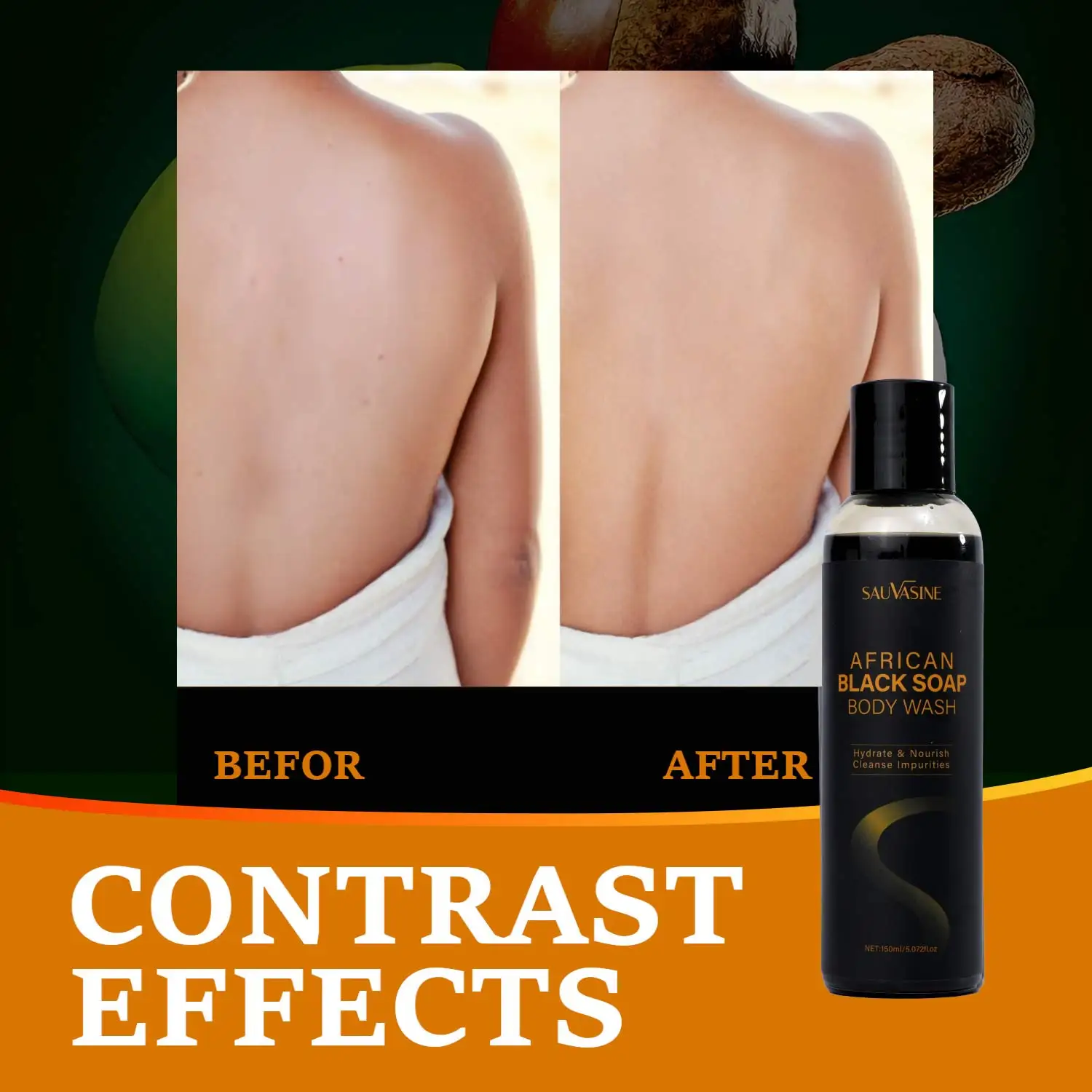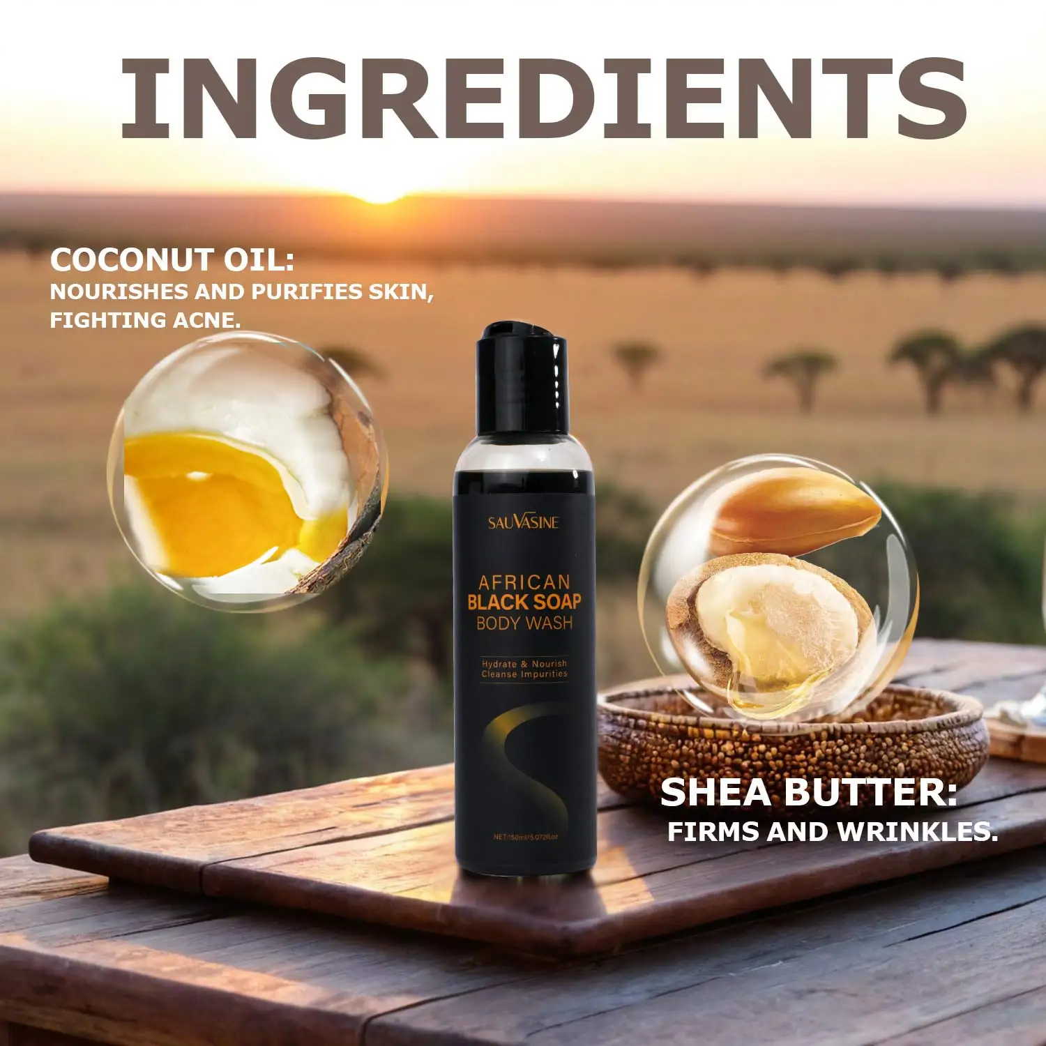 150 ml Afrikaanse zwarte zeep Kalmerende lichaamswas met sheaboter Diepe reinigende huid Hydraterende douchegel voor acnebehandeling Lichaamsverzorging
