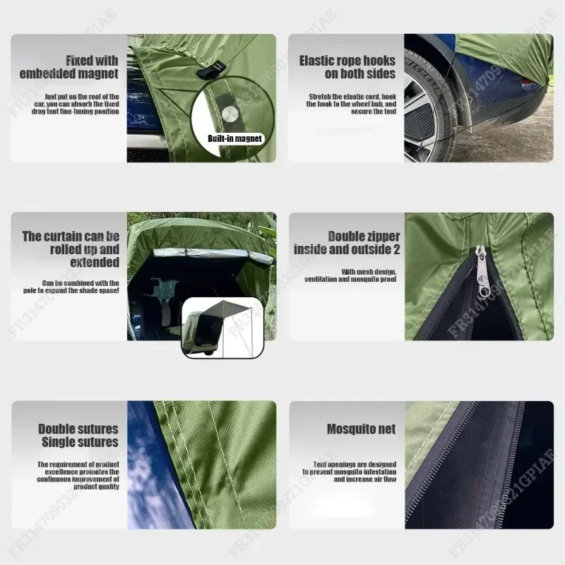 * Universal Fit: Ontworpen om alle SUV-modellen te passen, deze tent kan aan de achterkant van uw voertuig worden bevestigd en biedt veel schaduw en beschutting.