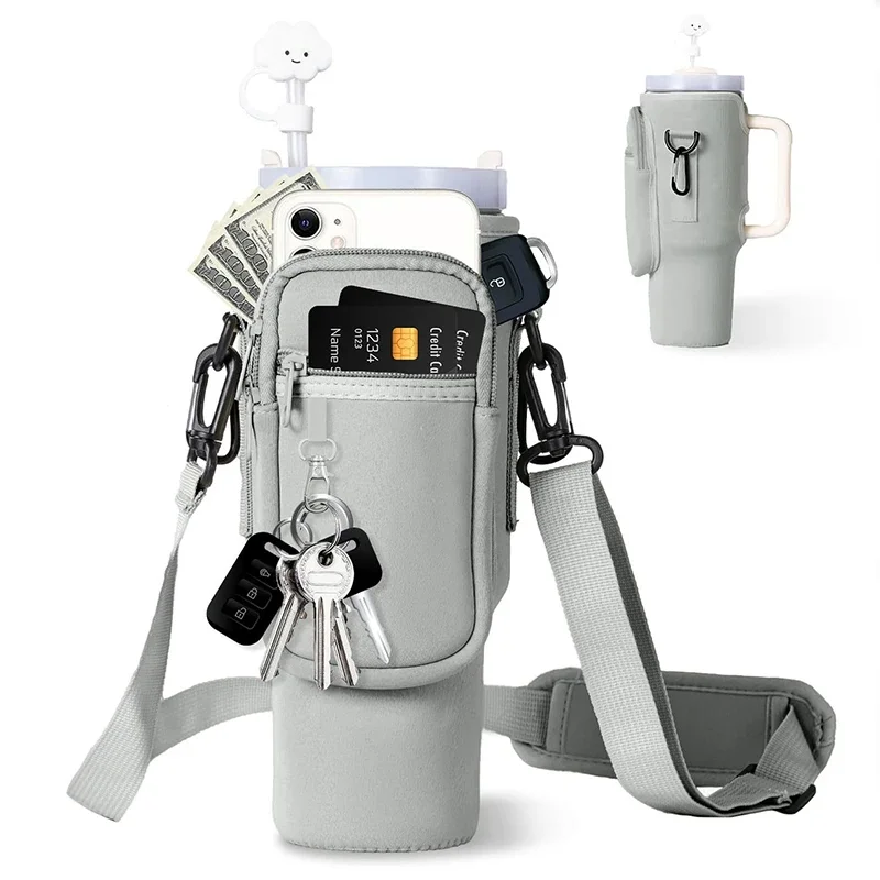 1. Keychain Feature: The water bottle carrier bag is thoughtfully designed with a keychain attachment, which allows for convenient hanging of keys or trinkets. This thoughtful addition helps maintain a clutter-free arrangement of your items, ensuring they are neatly organized and less prone to being misplaced.