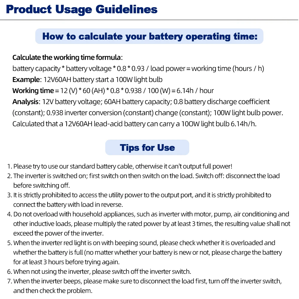 Omvormervermogen: Kies een omvormer met een vermogen die bij uw apparaten past.