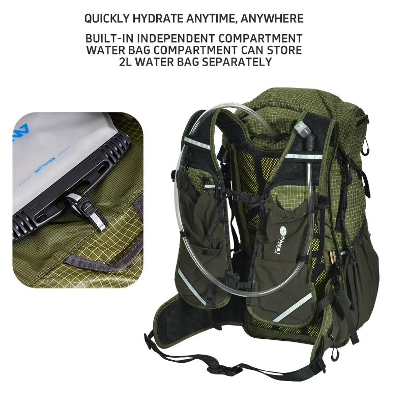 ANMEILU Outdoor Sports Backpack is een ongelooflijk technisch onderdeel ontworpen om aan de behoeften van atleten te voldoen.De lichtgewicht structuur, die slechts 680 gram weegt, vermindert de last bij buitenactiviteiten en kan de prestaties concentreren.Met een inhoud van ongeveer 30 liter is de rugzak een ideale metgezel voor wandelen en hardlopen over lange afstanden.Lichtgewicht ontwerp is niet alleen gemakkelijk mee te nemen, maar ook uithoudingsvermogen.Duurzaamheid van nylonmateriaal met hoge dichtheid, slijtvastheid is sterk, rugzak is bestand tegen de nauwkeurigheid van avontuur.