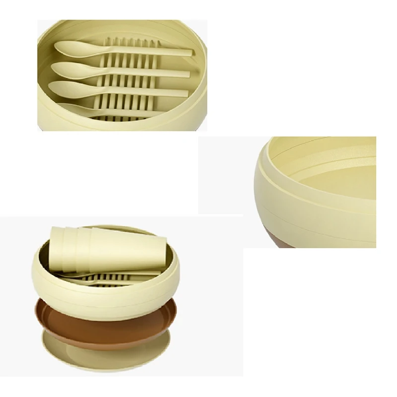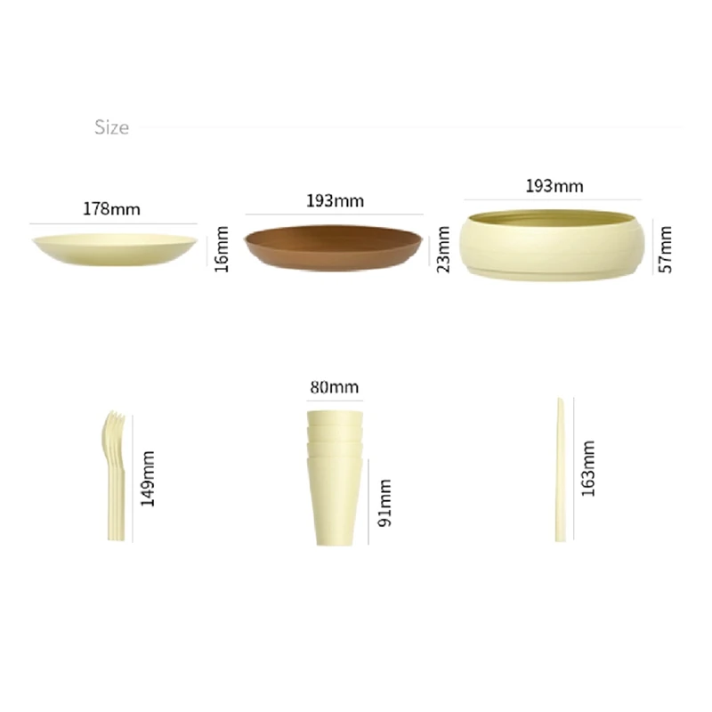 Camping Picknick Gerechten Set, (17 STKS) Draagbare Plastic Herbruikbare Bestekset, Essentiële Plaat voor buiten en beker Bruin en Beige Duurzaam