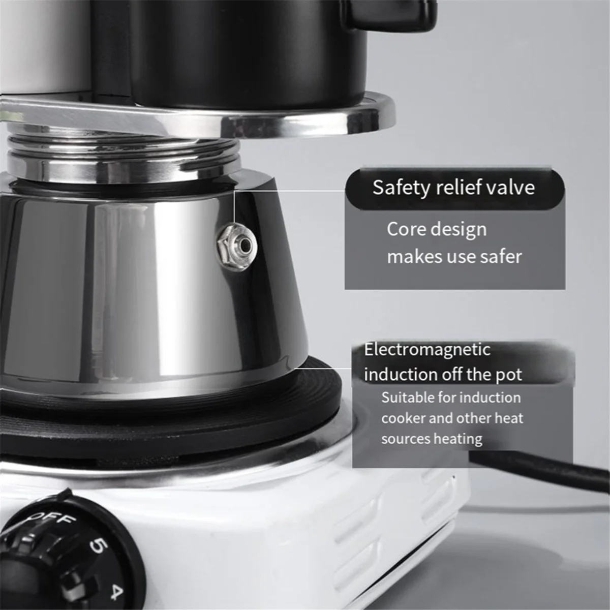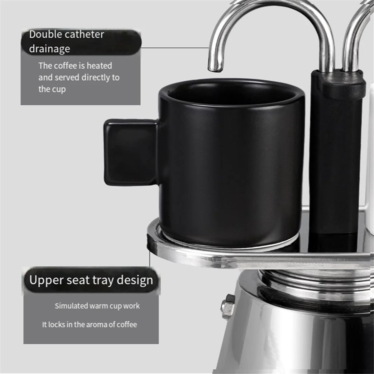 1. Maakt heerlijke koffie: deze innovatieve mokka giet koffie op een snelle en elegante manier, handig voor een snelle dubbele koffie of voor een vriendelijk bezoek. Dit nieuwe ontwerp combineert elegantie en functionaliteit terwijl de traditionele smaak van het zetten van koffie behouden blijft.