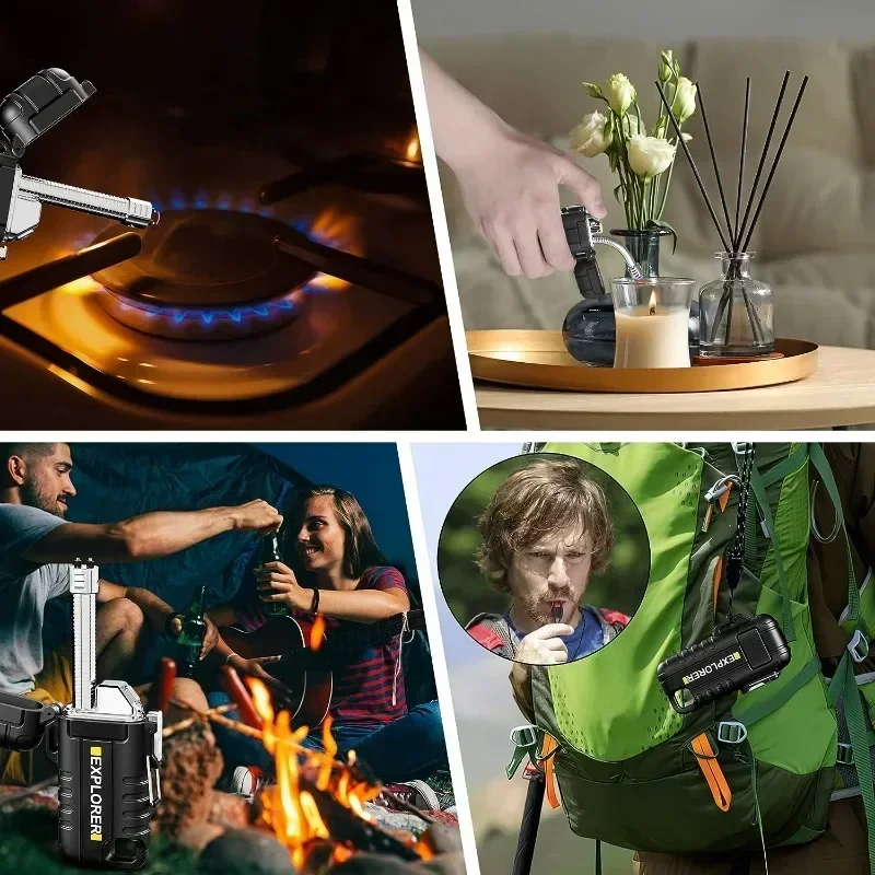 【IP56 WINDDICHT & WATERDICHTE ARC LIGHTER】: De oplaadbare elektrische aansteker is winddicht en waterdicht met stille vonken.Het speelt heel goed, zelfs bij stormachtig of sterk winderig weer.