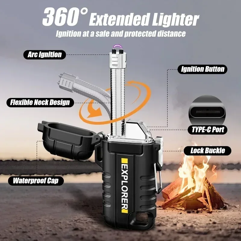【360° FLEXIBELE HALSVERLICHTING】: De elektrische aansteker heeft een verlengde lengte om uit de buurt van de vlam te blijven voor een veiliger ontsteking.360° draaibaar en uitschuifbaar geeft u de vrijheid om de hoek naar behoefte aan te passen.