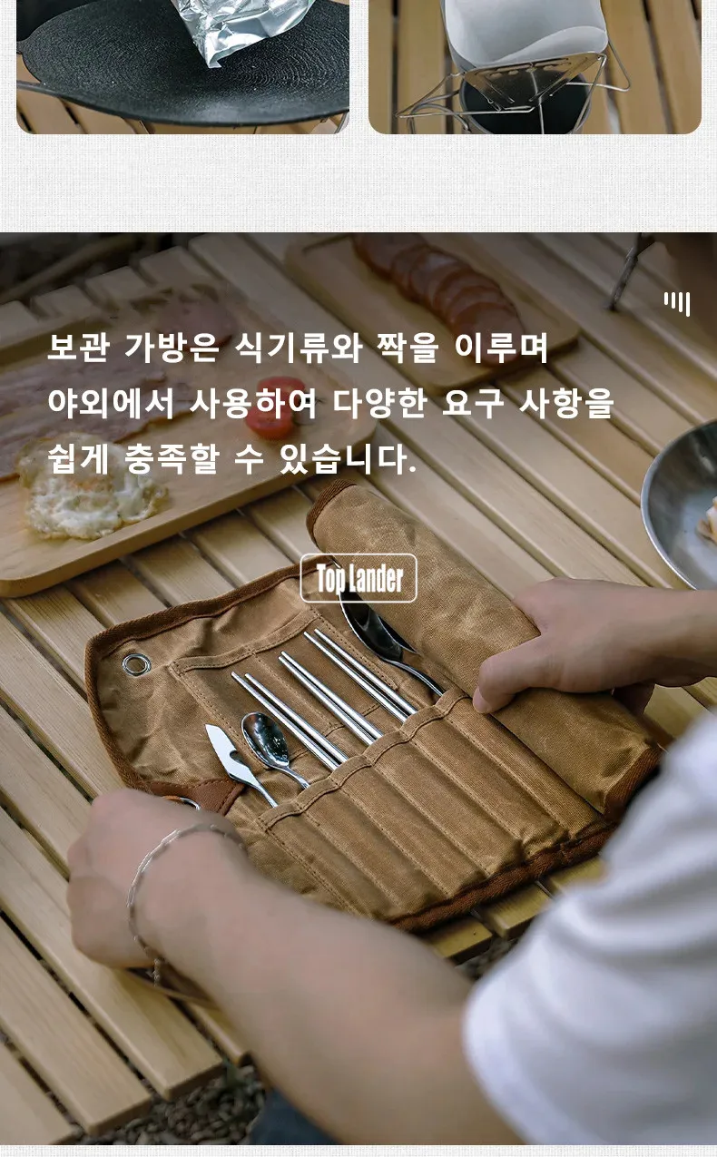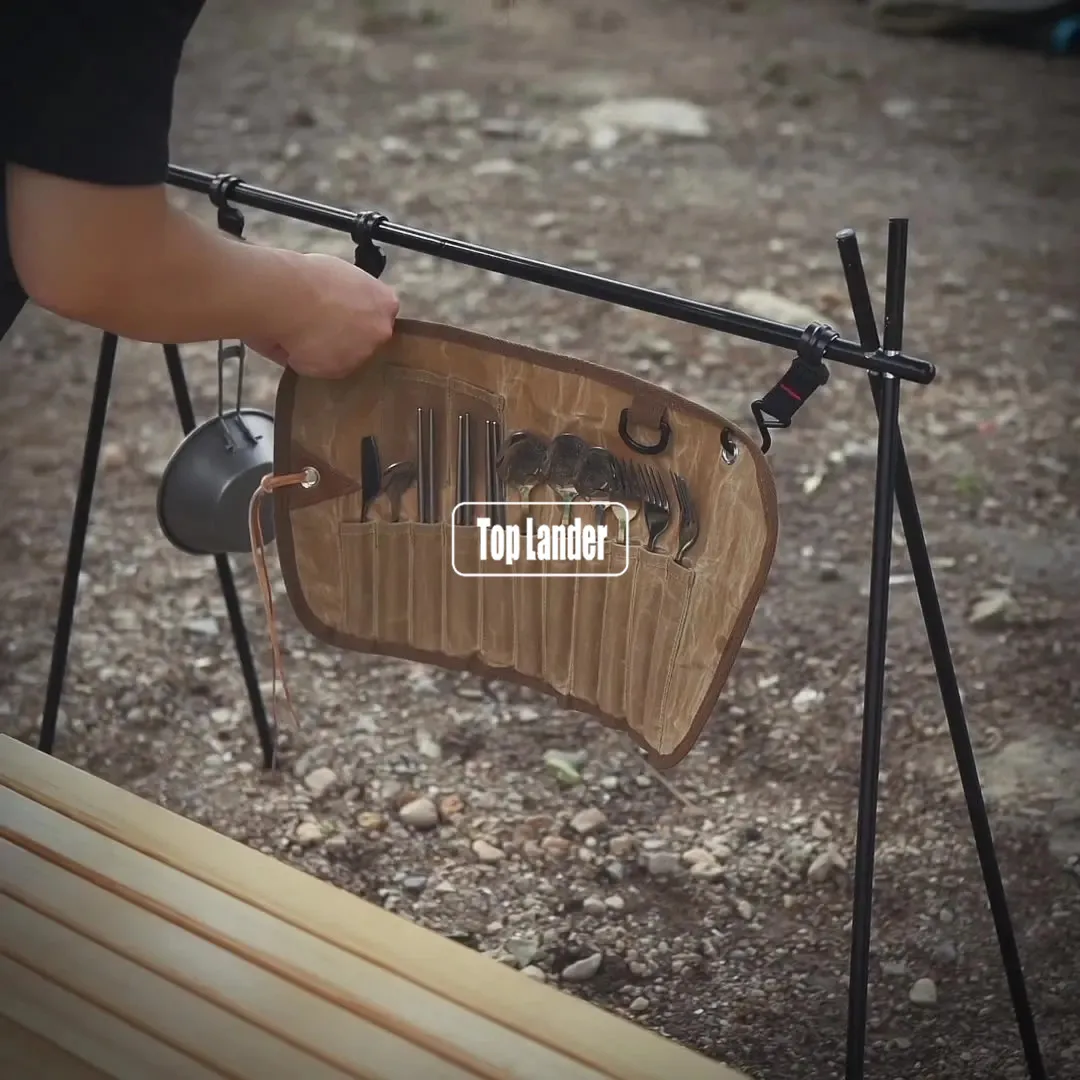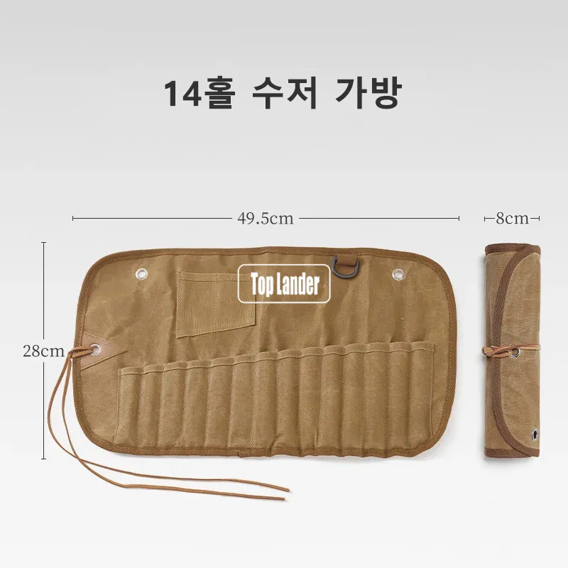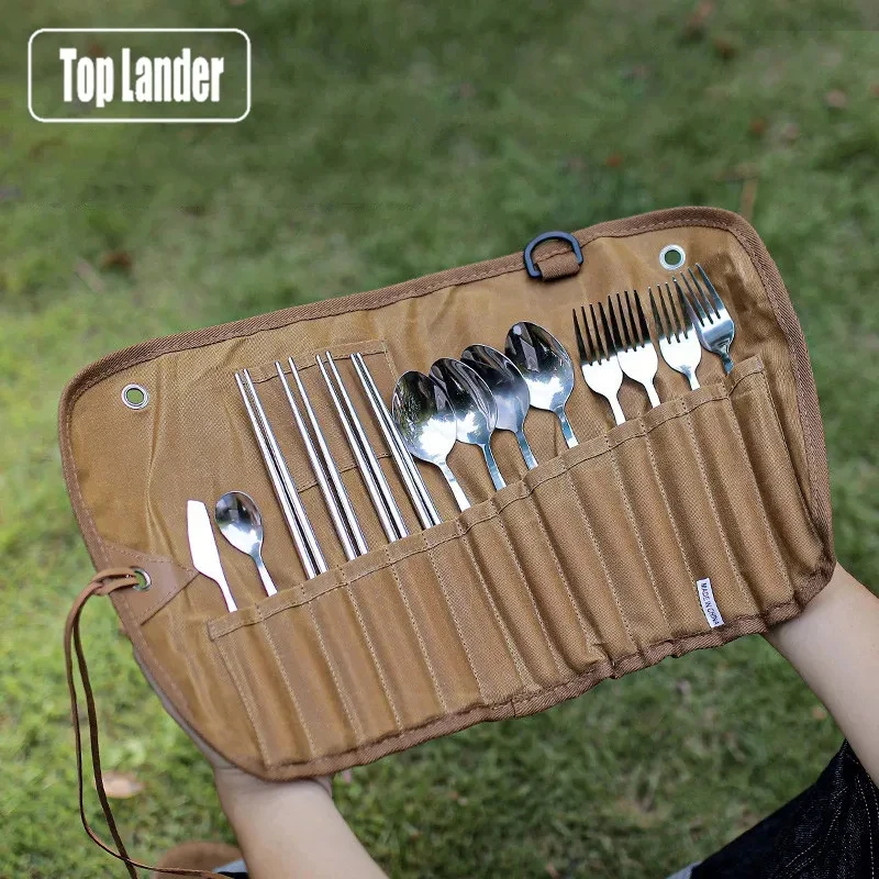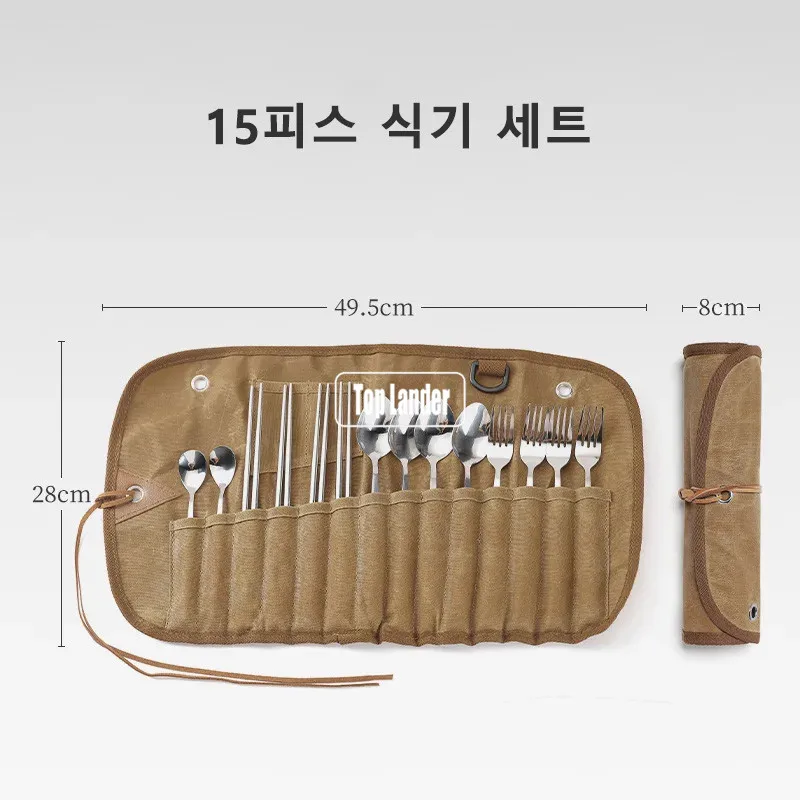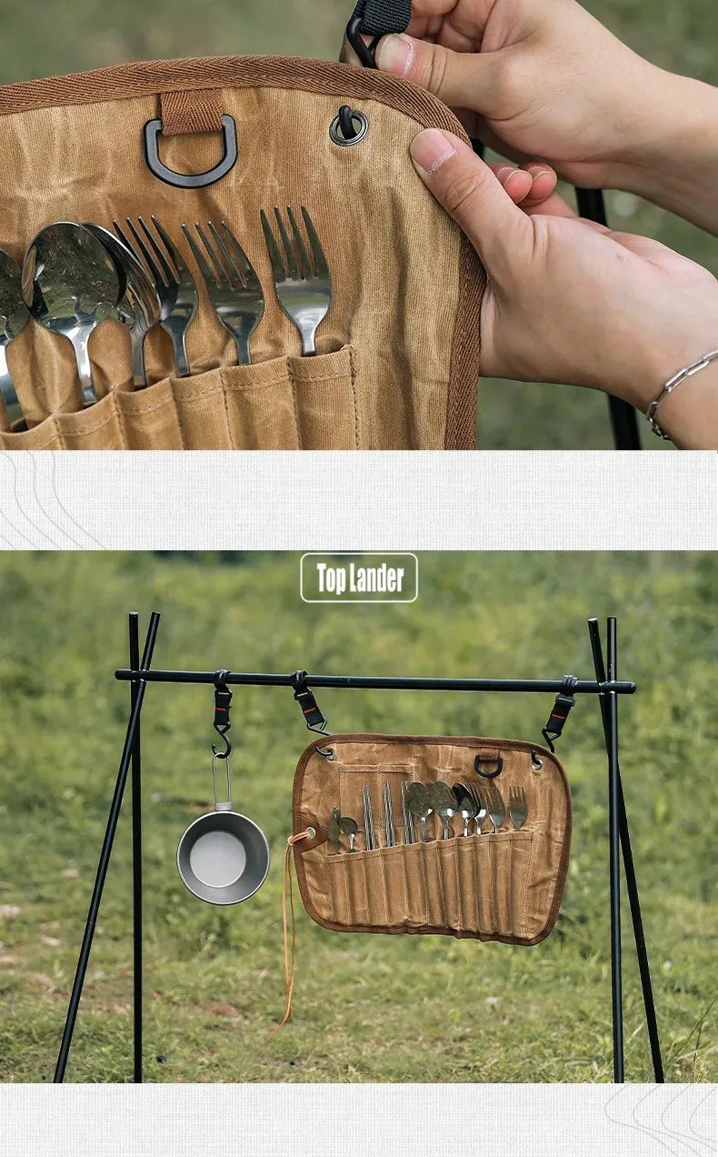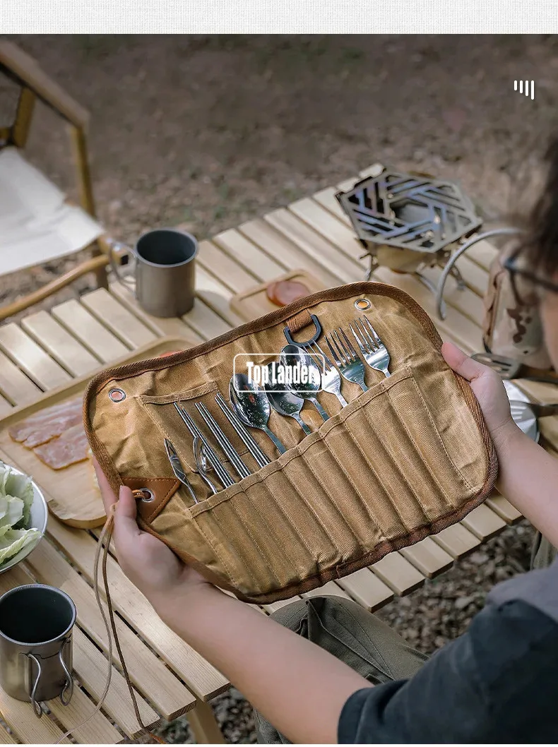 Outdoor Waxed Canvas Tafelgerei Opbergtas Waterdicht Servies Set Rvs Lepel Eetstokjes Vork Camping Reizen Picknick quantity
