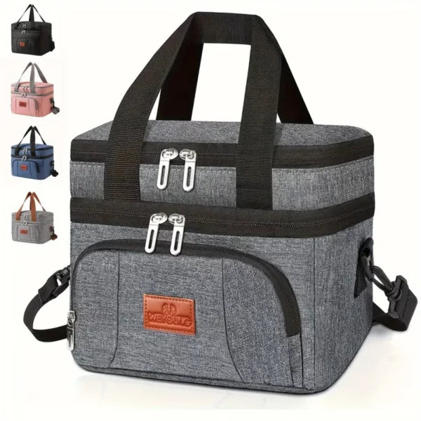 Multifunctionele Dubbele Lagen Tote Koeler Lunch Tassen Voor Vrouwen Mannen Grote Capaciteit Reizen Picknick Lunchbox Met Schouderriem